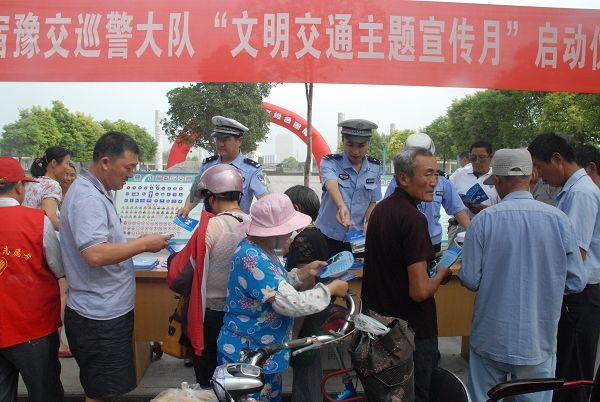 9月1日是“文明交通主題宣傳月”全國統(tǒng)一啟動日,全市各級交巡警部門按照據(jù)上級公安機關(guān)的統(tǒng)一部署,周密組織,精心策劃,開展了形式多樣的交通安全主題宣傳活動。宿豫交警大隊在“千鳥園”市民廣場舉行大型宣傳啟動儀式,通過懸掛橫幅、張貼標語、設(shè)立咨詢點等形式,向社會各界群眾宣傳開展文明交通主題宣傳的目的和重大意義。泗洪交警大隊在洪汽廣場舉行“文明交通主題宣傳月”活動啟動儀式,通過播放警示教育片、提供咨詢、散發(fā)宣傳材料等形式,廣泛開展宣傳教育活動,倡導(dǎo)文明交通。泗陽大隊、一大隊、二大隊、機動大隊以新學(xué)期開學(xué)為契機,組織民警深入轄區(qū)學(xué)校,利用學(xué)校主題班會、“升旗儀式”等有利時機開展形式多樣的宣講活動,上好“開學(xué)第一課”,提高學(xué)生的交通安全防范意識;顒悠陂g,全市交巡警共出動警力230余人次,設(shè)立咨詢點23個,懸掛橫幅18條,張貼標語、宣傳畫等460余張(幅),展出靠牌600塊,進學(xué)校110所,散發(fā)宣傳材料11萬余份,受教育群眾達20萬余人次,收效良好。